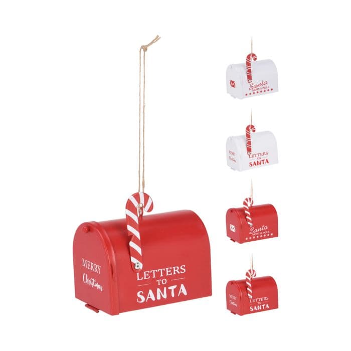 Hängande juldekoration postlåda 8x7cm - röd/vit assorterad färg
