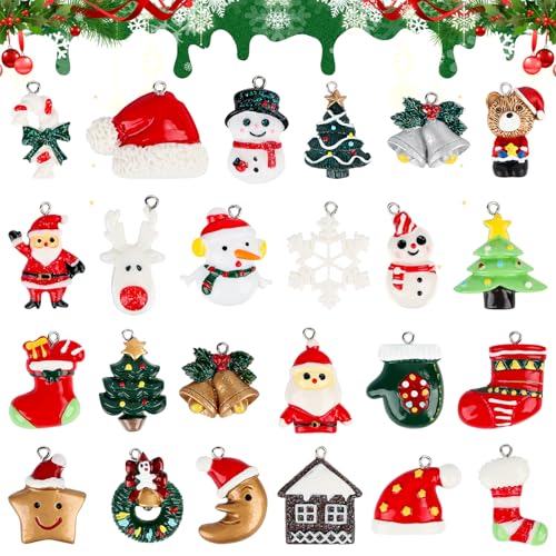 24 stycken julhängen julgransdekoration, hängen jul mini, harts julgranspynt, ornament, trädhänge, för smyckestillverkning, adventskalender hängande juldekoration