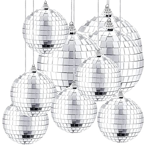DBAILY Spegelbollar, 9 st spegel disco bollar hängande boll 8 cm och 6 cm glänsande reflekterande dekorera silver för juldekoration tema fest festivaler