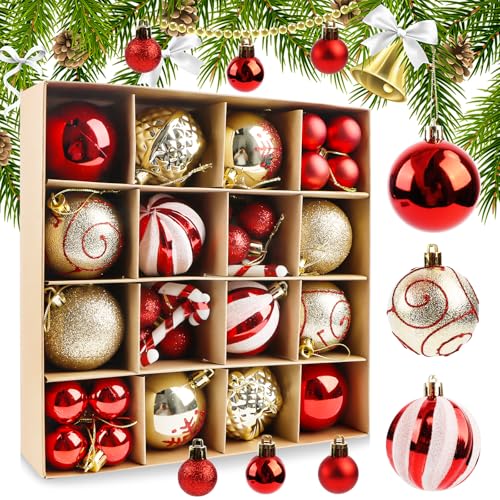 Julgranskulor 40 stycken, stora röda och guldfärgade julgranskulor, ornament, plast dekorativa kulor, hängande juldekoration för julgran, semesterfest, hem, bröllop