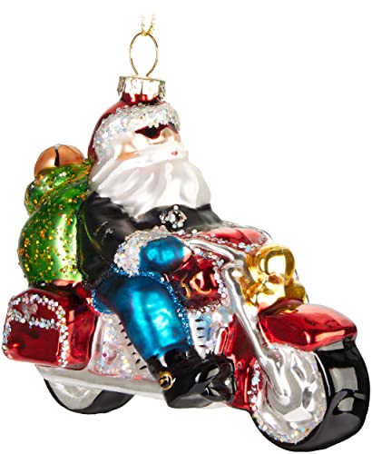 BRUBAKER Handmålat Glas Julkulor - Roligt Motiv - Handblåst Julgransdekoration Figurer Rolig Deko Hängande - Trädkula Julgranskula Juldekoration - Jultomten på motorcykel