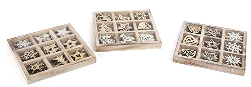 Small Foot Dekorativ trähängande hängande för juldekoration, i en uppsättning av 3 med nio olika trädekorhängen vardera, perfekt som dekoration ornament, natur, 18 x 18 x 2 cm