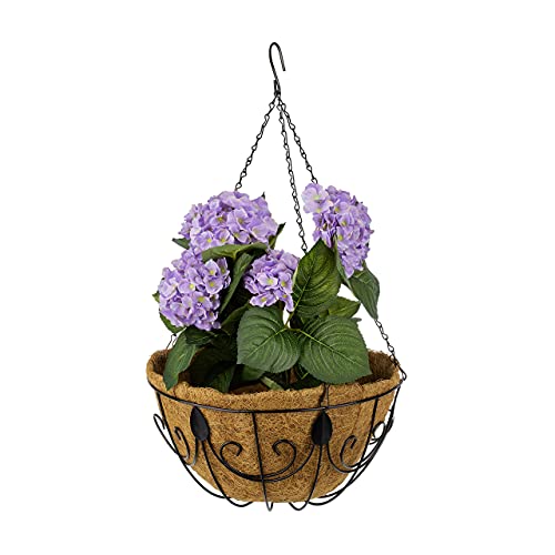 Nästan naturlig konstgjord bougainvillea hängande blomkorg fuskväxt för inomhusdekoration med brun korg hängande korg, 81 cm D x 81 cm B x 61 cm H