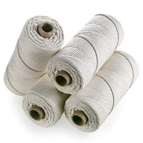 MB Cordas Macrame Garn 4mm 260m, 1.5kg - Naturligt Bomullssnöre - 3-slagen Stark Bommullsträng - Sticka, Virka, Macrame - DIY Hängande korg, Drömfångare - Elfenben Ecru Vit