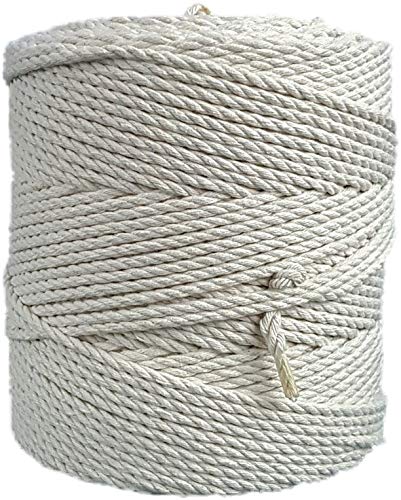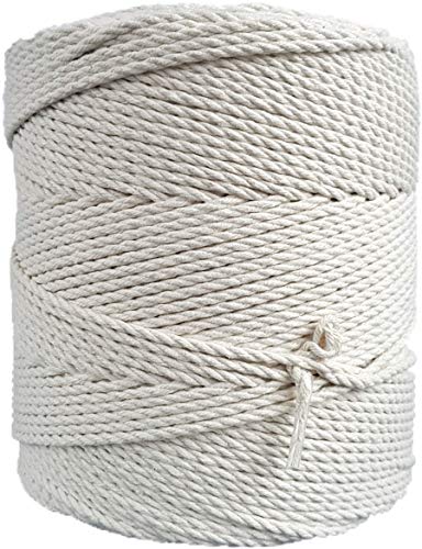 MB Cordas makramé rep 5 mm 438 yd enkelt tvinnat bomullssnöre – 1 lager starkt bomullssnöre – stickning, virkning, makramé, vävning `sladd – handväska, hängande korg, drömfångare – elfenben Ecru vit