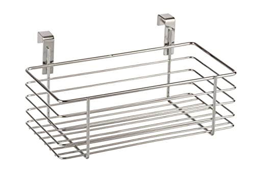 WENKO Stor hängande korg, organisatör för upphängning på låda eller skåpdörr, platsbesparande förvaring, lämplig för badrum och kök, utan borrning, tillverkad av förkromad metall, 24 x 24,5 x 15 cm