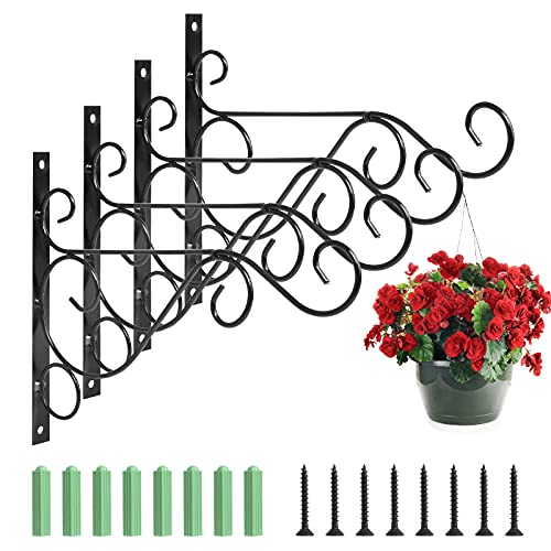 Jubaopen 4-pack hängande korg krokar järn vägg hängande fästen krokar Metallkorghängare Vägghängande korgfästen med skruvar för trädgårdskorgar Lantern Plant Wind Chimes (Black)