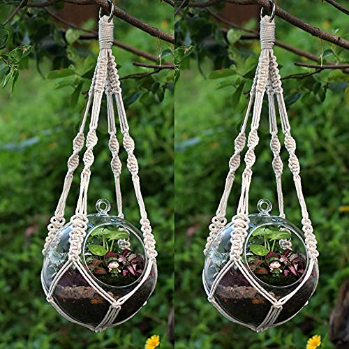 YCDC makramé växthängare naturlig manuell stickad bomullssladd, hängande korg med ring 51 cm 2 st set