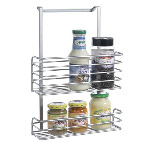 WENKO Hängande korg smal, organisatör för upphängning på lådor eller skåpdörr, platsbesparande förvaring, lämplig för badrum och kök, utan borrning, tillverkad av förkromad metall, 24 x 11,5 x 10 cm