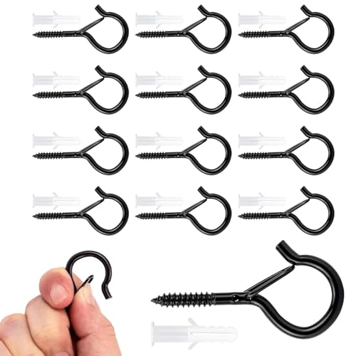12 st Q hängare krokar för utomhus julljusslinga, säkerhetsspänne, staket celling svarta skruvkrokar för trä vägg hängande älva lampor växter fågelmatare koppar, skruv i krokar,