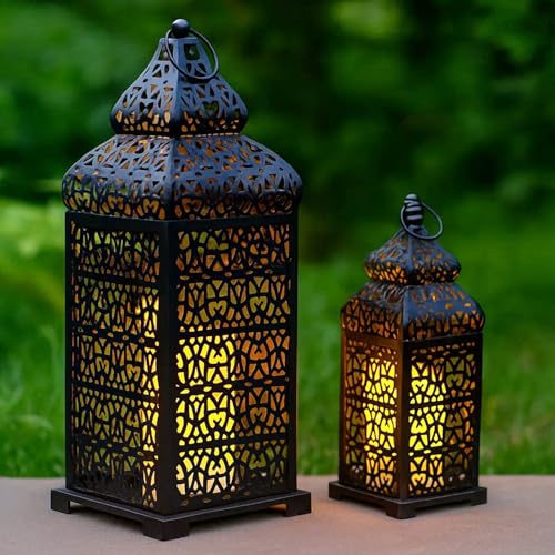 VELA LANTERNS Stor tempel marockansk lykta lampa dekorativa ljushållare för ramadandekorationer, hängande, utomhus uteplats eller veranda, inomhus heminredning, bröllop, svart, set med 2