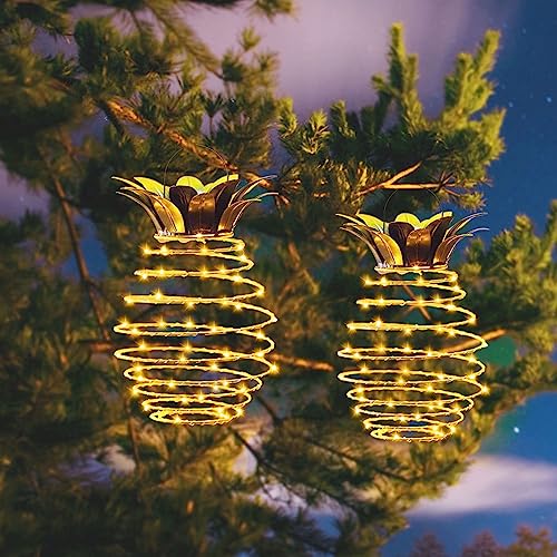 BEIJIALY 2st Utomhus Solar Hängande Lyktljus, Ananas Solar Lampor, Hängande Solar Lykta med Handtag, Solar Trädgårdslampor Dekorativa för Trädgård, Gångväg, Gård, Gräsmatta(Ananas)