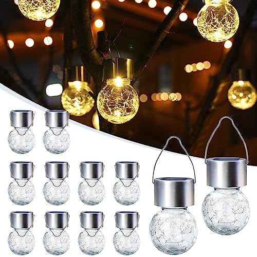 GIGALUMI Solcellslampor utomhus, 12-pack sollampor hängande lampor, trädgårdsdekor, gåvor för kvinnor mamma mormor, sol utomhuslampor lykta sprucket glas för gård, staket, träd (varmvit)