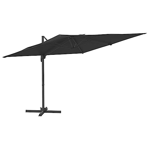 vidaXL Frihängande parasoll med aluminiumstång svart 300x300 cm, trädgårdsparasoll, hängande parasoll, altanparasoll, solskydd, uteparasoll