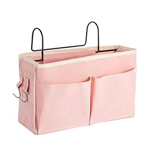 IGNPION Nät sängbord hängande förvaring säng fickor korgar sovsal säng organiserare caddy mångsidig hängande förvaringsväska för hem kontor skola sovsal sjukhus, rosa