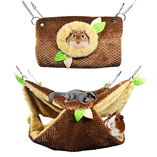 Dongzhi Husdjursbur hängmatta, 2 lager hamster hängande säng plysch sockerstege bur chinchilla gungbo marsvin tupplur säck varm illrar gömställe tillbehör leksak för små djur råtta