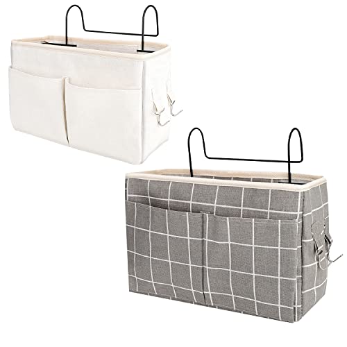 2 stycken sängväskor säng organiserare hängande väska förvaringsväska, hängande multi-ficka med stor kapacitet sängficka för bok, snacks, fjärrkontroll med mera (vitt, grått rutnät)