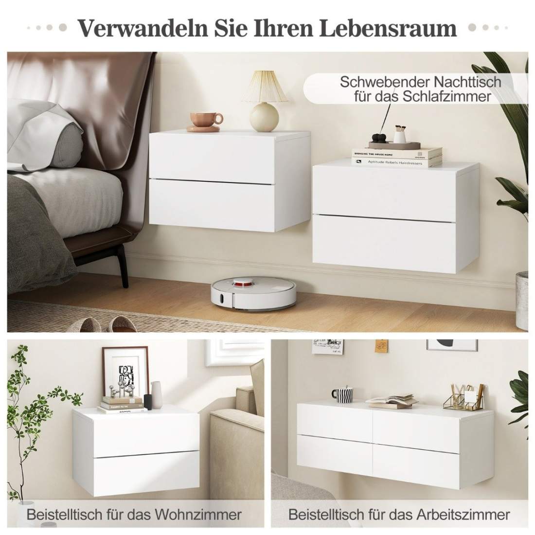 WOLTU Set med 2 hängande nattduksbord, sängbord för sovrum med 1 låda och 1 öppet fack, väggfäste, modernt sovrumsskåp, i trä, 40 x 35 x 31 cm, vit, NTS03ws-2