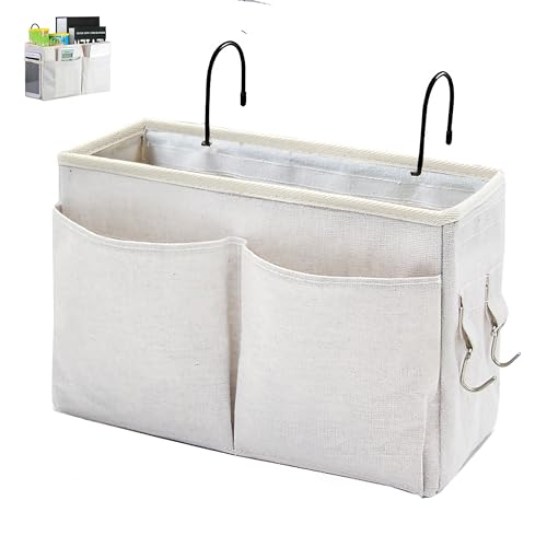 IGNPION Duk sängbord hängande förvaring sängfickor korgar justerbar hängande tejp sovsal sängorganiserare caddy mångsidig hängande förvaringsväska för hem kontor skola sovsal sjukhus, vit