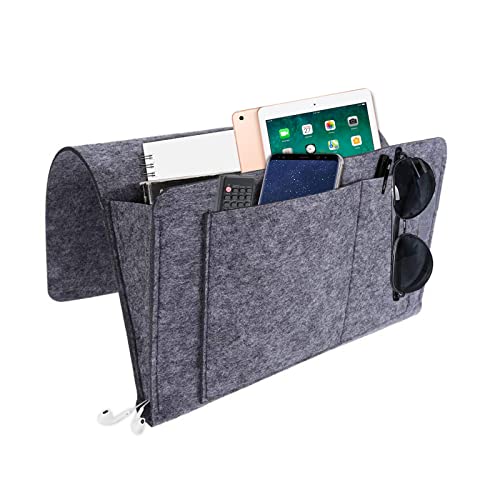 jiuzcare Hängande förvaring Caddy Storage Organizer med krok hål & fast tejp för fjärrstyrning bokdyna filt halkskydd sängbord ficka för bok telefon, iPad, vattenflaska, headset, ljusgrå