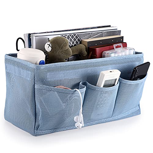 IGNPION Nät sängbord hängande förvaring sängfickor korgar sovsal säng organiserare caddy mångsidig hängande förvaringsväska för hem kontor skola sovsal sjukhus, blå