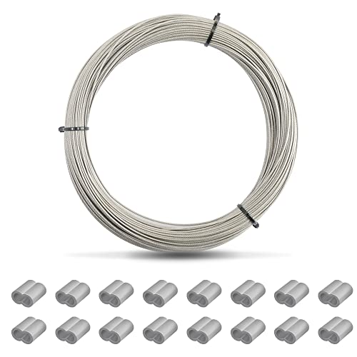 Abimars Vajer, 100 m rostfritt stål vajer kabel flygplanskabel med aluminium krympögla, 304 vinylbelagd hängande tråd, 7 x 7 trådkärna för växter klättring, blomhängning, hantverk gör-det-själv