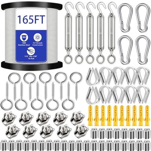 TooTaci 3 mm vajer, 3 mm rostfritt stål vajer, 1/8 kabelräcke-kit, 50 m kraftig metalltrådkabel, trädgårdstråd, stakettråd, hängande tråd, balustradtråd, med krymphylsor, vajer fingerborgar