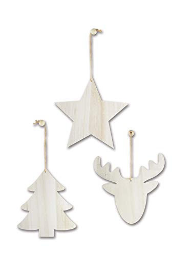 Riffelmacher 71534 – trähänge av trä, 1 styck, storlek 18 cm, 3 gånger sorterade: Star, träd, hjort, inget motivval möjligt, dekoration, jul, advent, pyssel, hängande dekoration, julgran