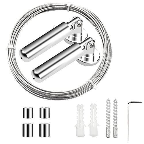 BUYGOO Bild hängande tråd justerbar 2 st kraftig rostfritt stål spegel vajer kit rostfritt stål vajer med ögla och krok, 1,5 mm x 2 m bildkedja hängande klämmor för ljus/lampa, håller upp till 30 kg