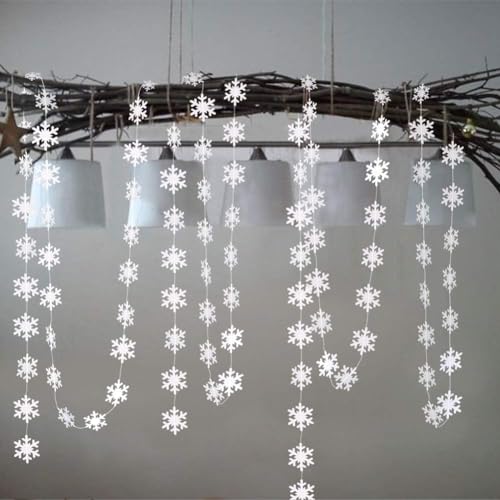 Cheerland Pearl vit is snöflinga girlang kit hängande juldekorationer snöflingor träd dekor streamer flaggväv banderoll för vinter underlandet fest födelsedag bröllop nyår baby shower heminredning