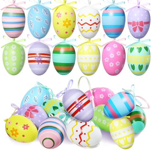 ZZOUFI Påskdekorationer Ägg, 24pcs Hängande Påskägg för Träd Utomhus, Dekorativa Påskägg, Plast Påsk Ägg Hänga i Träd