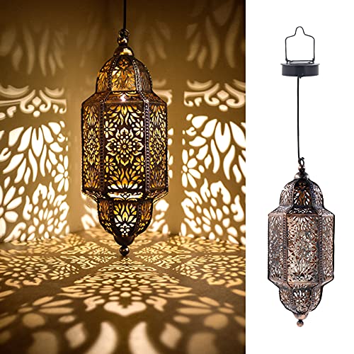 Lifeel Solcellslykta för utomhusbruk, marockansk trädgårdslykta, dekorativ sollampa hängande, metall LED sollykta för utomhusbruk träd uteplats (brons)