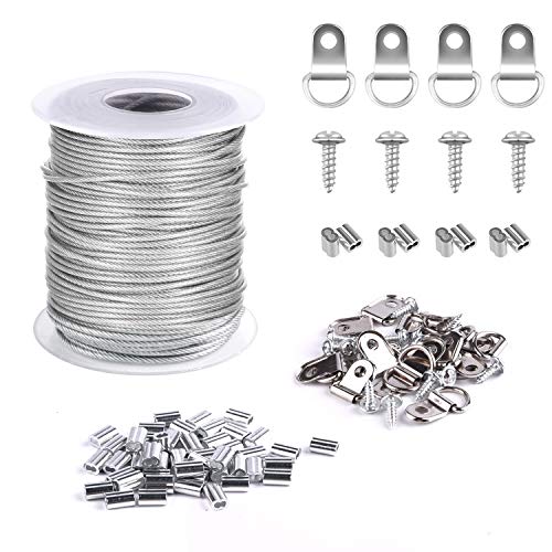 Vinylbelagd bildram hängande tråd, rostfritt stål trådspole med 20 stycken aluminium krympögla, stöder upp till 1,5 mm x 98 fot)
