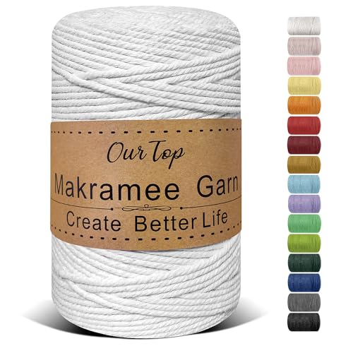 OurTop Premium makramégarn vitt, 3 mm x 300 m, makramésnöre, makramérep, garn för gör-det-själv-hantverk, vävning, dekoration, hängande växt växthängare