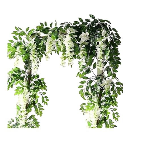 ZEACCT 2 x 7 fot konstgjord blåregn krans konstgjord blomma siden murgröna hängande växt väggdekoration växt blomma konst firande ceremoni hem bröllop trädgård dekoration (vit)
