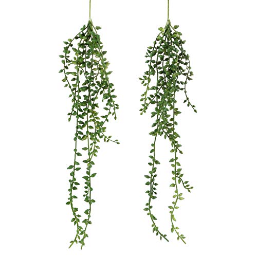 Meneco Konstgjorda hängande växter 2-pack falsk sträng av pärlor växter oanvända falska hängande växter suckulent dekor (stor)