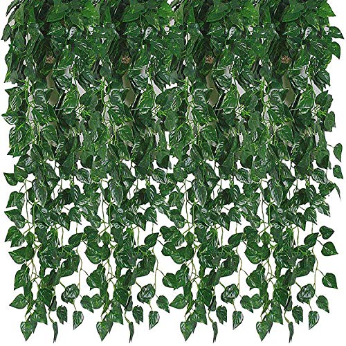 Newaner Efeu Konstgjord girlang, dekorationsgardin, 12 stycken 26,4 m, hängande konstgjorda växter, konstgjorda växter, rumsdekoration för kök, terrass, gunga, bröllop, kontor, fest, jul, halloweendekoration, grön