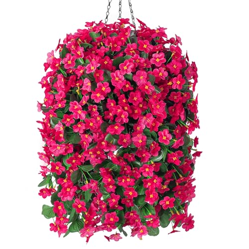 ArtBloom Konstgjorda blommor, UV-beständiga, konstgjord buxbom, för inom-/utomhusbruk, hängande växter, för trädgård, veranda, fönsterlåda, hem, bröllop, lantställe, 6 knippen (magenta)