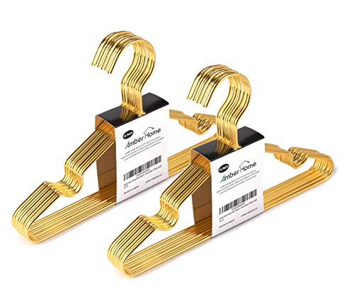 Amber Home Guldfärgade barnklädhängare, starka metallklädhängare för barn till garderoben, platsbesparande hängare för småbarns jackor och byxor, 20-pack, 30 cm, guld
