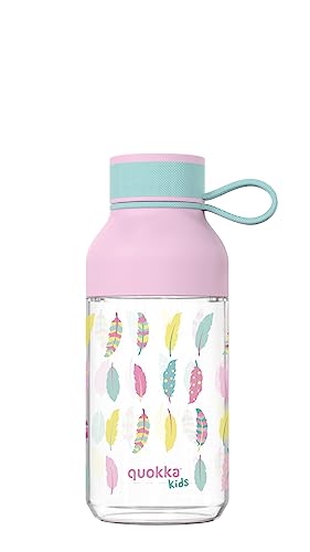 Quokka Kids Ice Med Hängare - Feathers 430 ML | Återanvändbar Tritan vattenflaska - BPA-fri | Bred öppning för fyllning och dropppropp