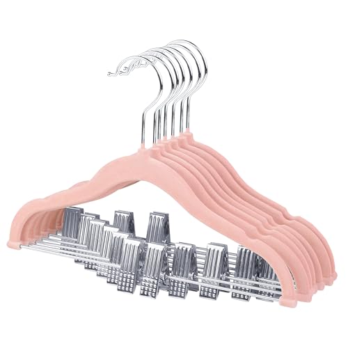 ManGotree Kids kjolahängare, Baby sammet hängare med rörliga klipp, halkfri byxhängare, 30 cm långa platsbesparande barnklädhängare för skjortor, klänningar, kjolar, jackor (7 Pack, rosa)