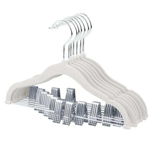 ManGotree Kids kjolahängare, Baby sammet hängare med rörliga klipp, halkfri byxhängare, 30 cm långa platsbesparande barnklädhängare (7 Pack, vit)