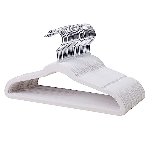 MangoKit halkfria hängare för barn i sammet |32-pack platsbesparande filthängare för barn- och tonårskläder och rockar - vit