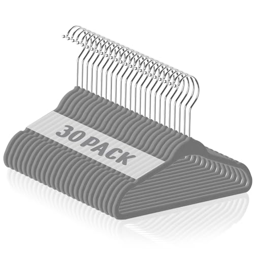 HOUSE DAY Baby hängare i sammet 30-pack, halkfria barnhängare, platsbesparande babyhängare för kläder, sammet baby rockhängare för baby småbarn och barn, grå
