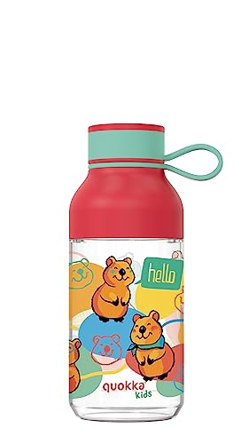 Quokka Kids Ice Med Hängare - Happy Quokka 430 ML | Återanvändbar Tritan vattenflaska - BPA-fri | Bred öppning för fyllning och med dropppropp