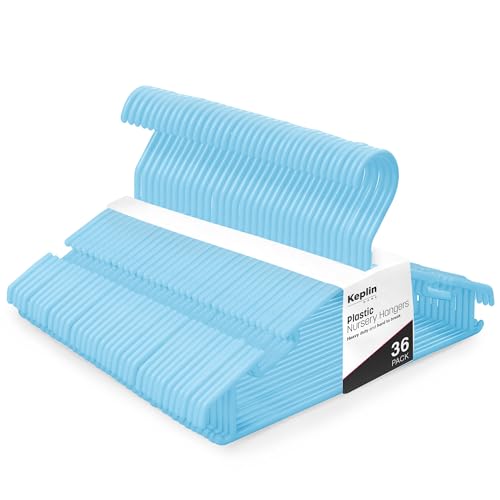 KEPLIN 36-pack barnhängare, plast, halkfri babyrockshängare, platsbesparande rörformiga hängare, mer förvaring för barn kläder klänningar (blå)