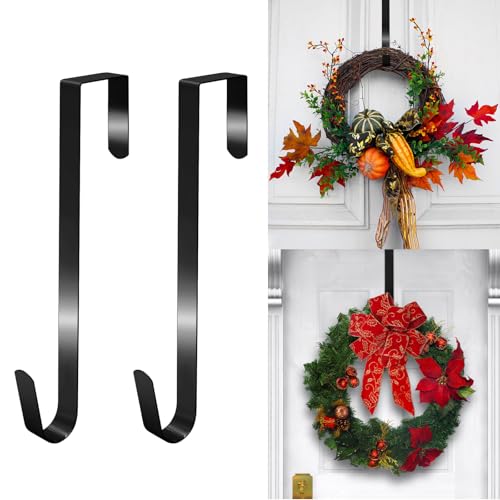GHKLNY 2 st kranshängare för ytterdörren – större dörr uppgradering krans hängare jul höst kransar dekorationer krok, lång metall höst jul krans krok (svart, 38 cm/15 tum)