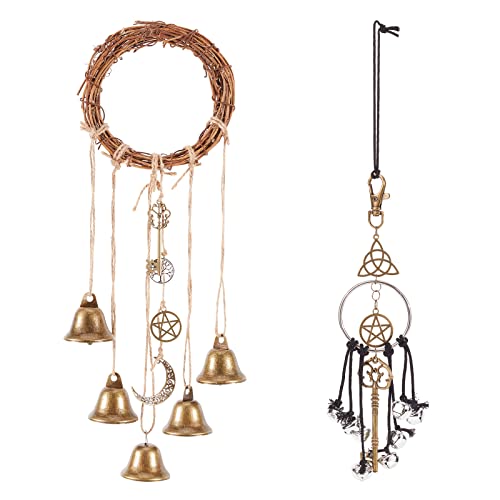 GORGECRAFT 2PCS 2 Style Witch Bells Skydd för Dörr Hängare Witch Wind Bells Magiska Hemskydd Klockor Handgjorda Energi För Wicca Dekoration