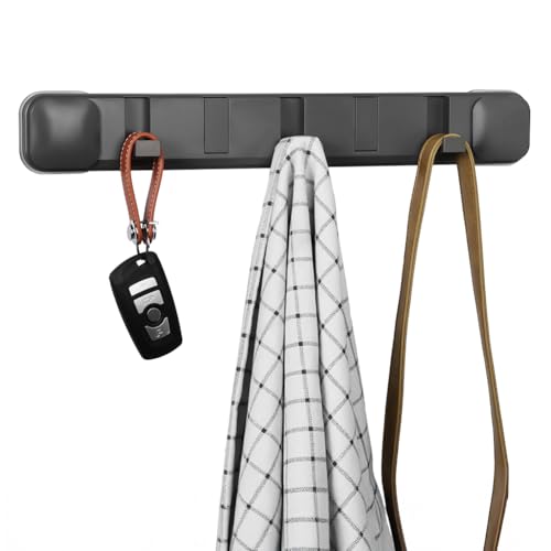 flintronic Vägghängare med 5 infällbara krokar, aluminium vikbar metallväggkrok dörr väggrock hängare för upphängning av rockar halsdukar, handväskor och annat, för kök, hall