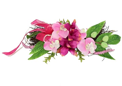 Rotting blomhylla med konstgjorda orkidéer – 30 cm dekorativ hängare i rosa och lila – blommig bordsarrangemang vår sommar – dörr-, fönster- och väggdekoration – konstgjorda blommor arrangemang